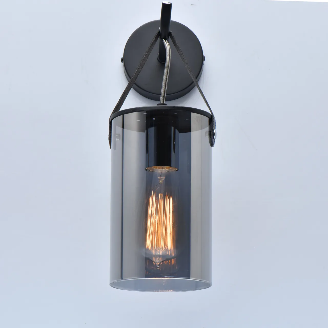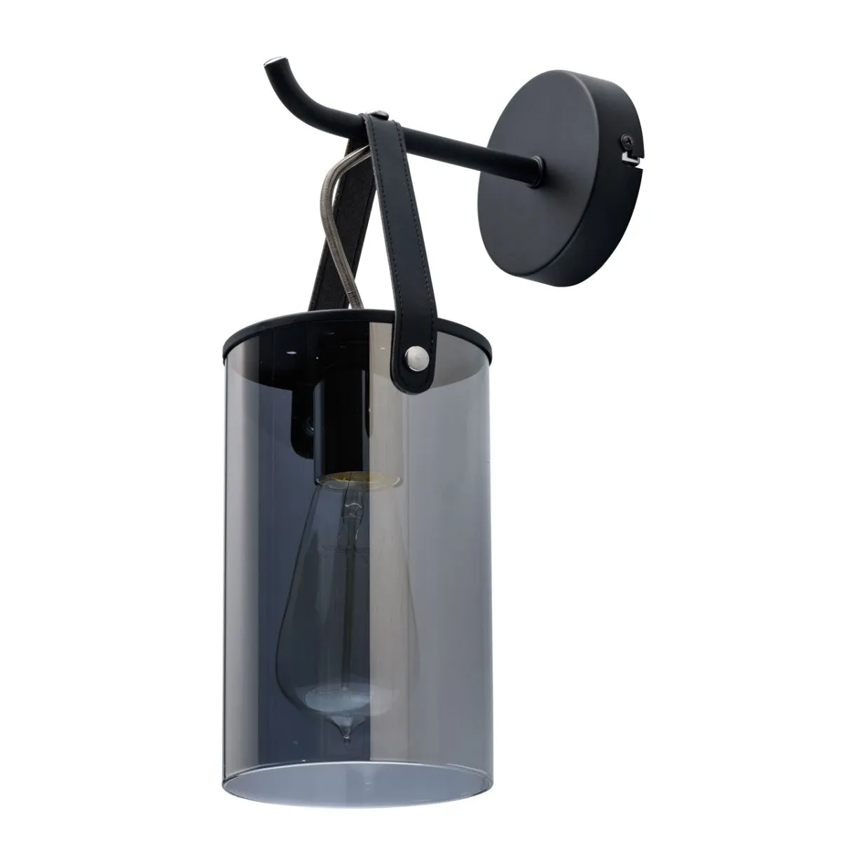 Основание/металл/черный Плафон/стекло/серый Декор/кожа/черный