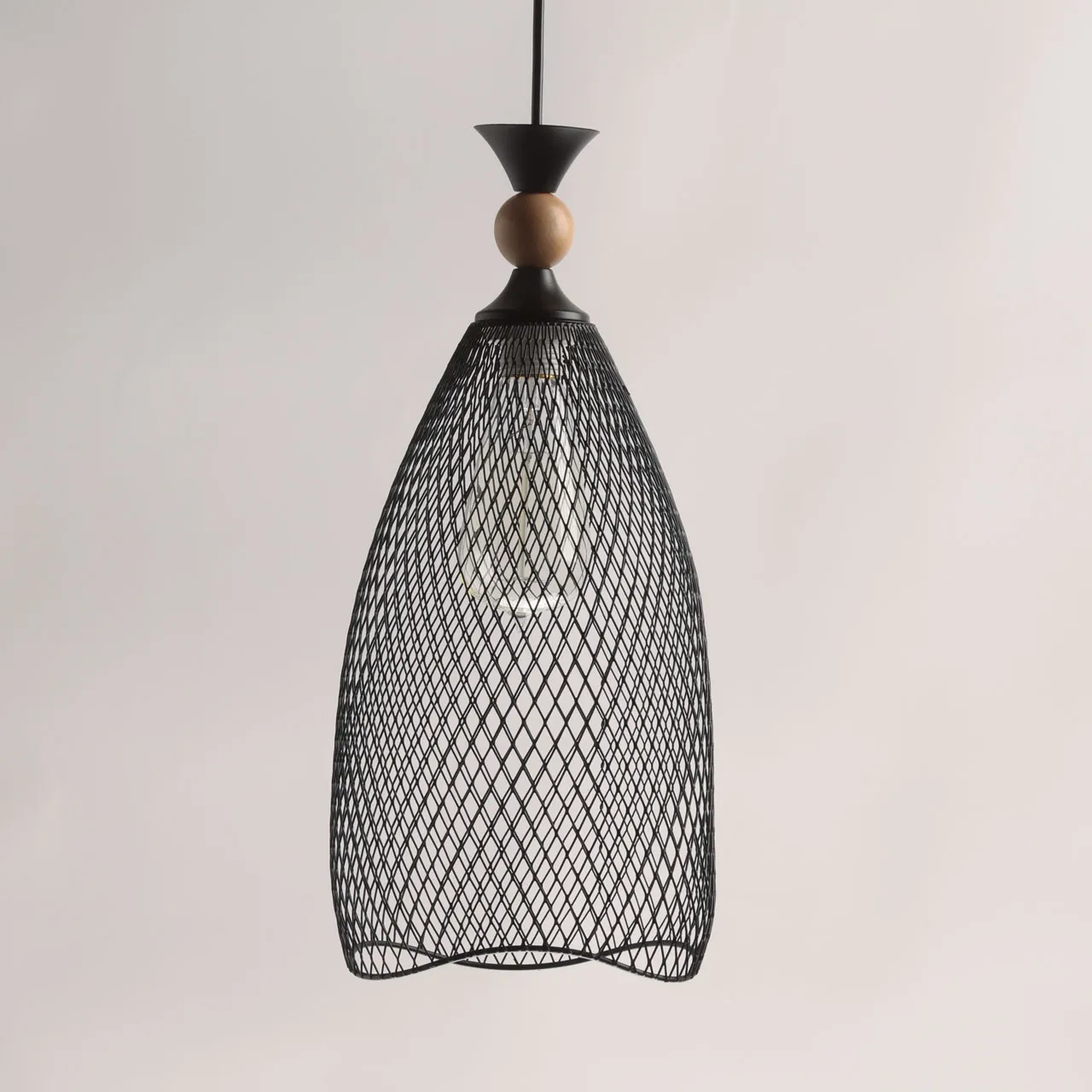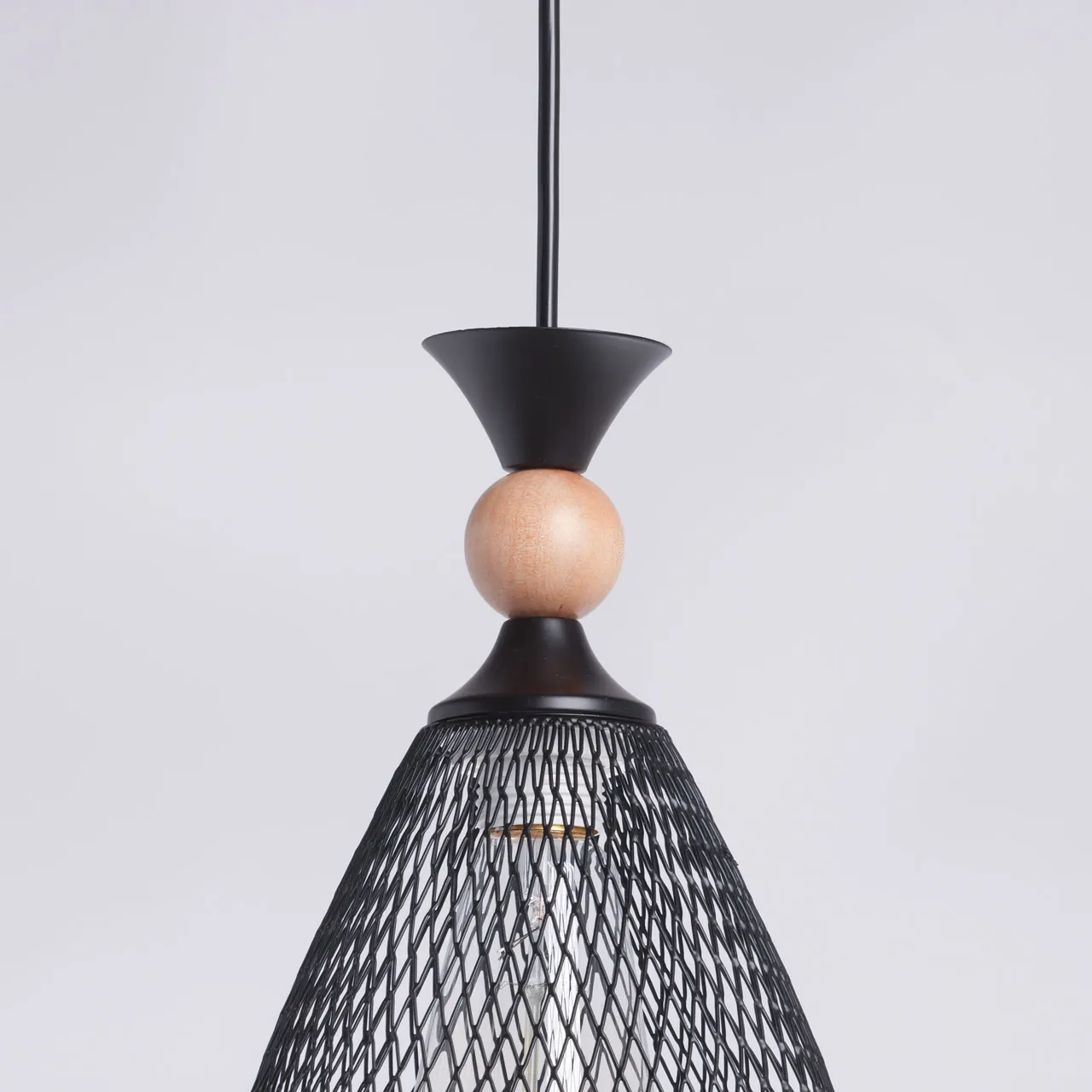 Основание/ металл/ черный Плафон/ металл/ черный Декор/ дерево/ светлый
