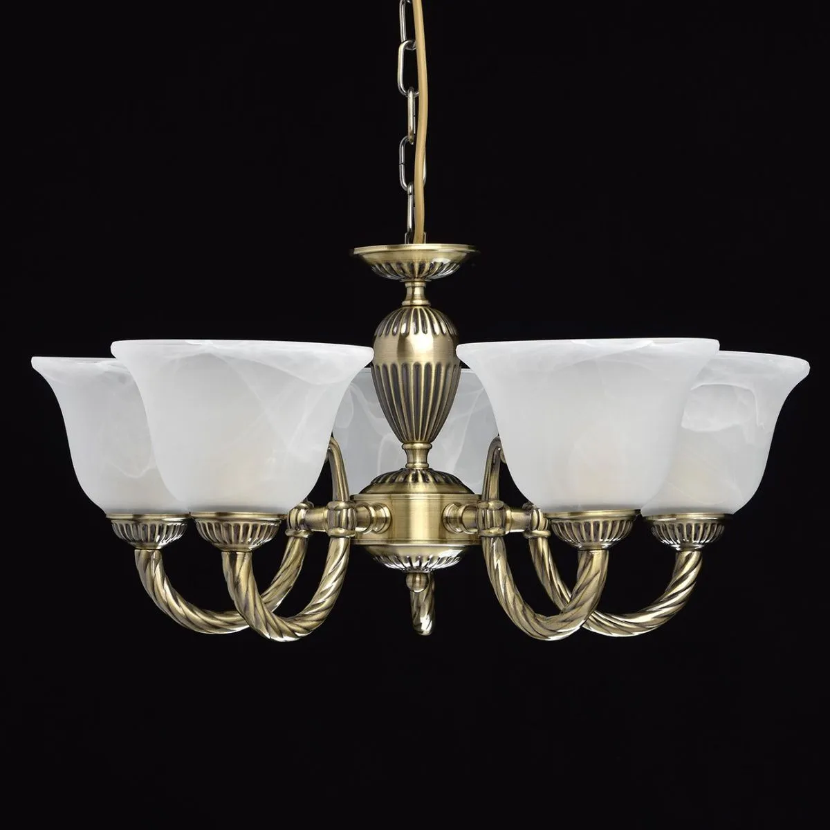 Металлическое основание цвета античной бронзы. Плафоны: матовый плафон из алебастрового стекла.