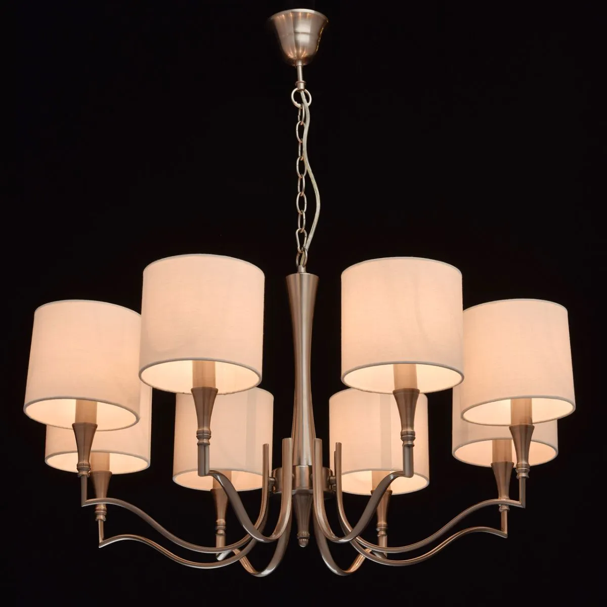 Металлическое основание цвета сатинового никеля. Абажуры -текстиль сливочного цвета