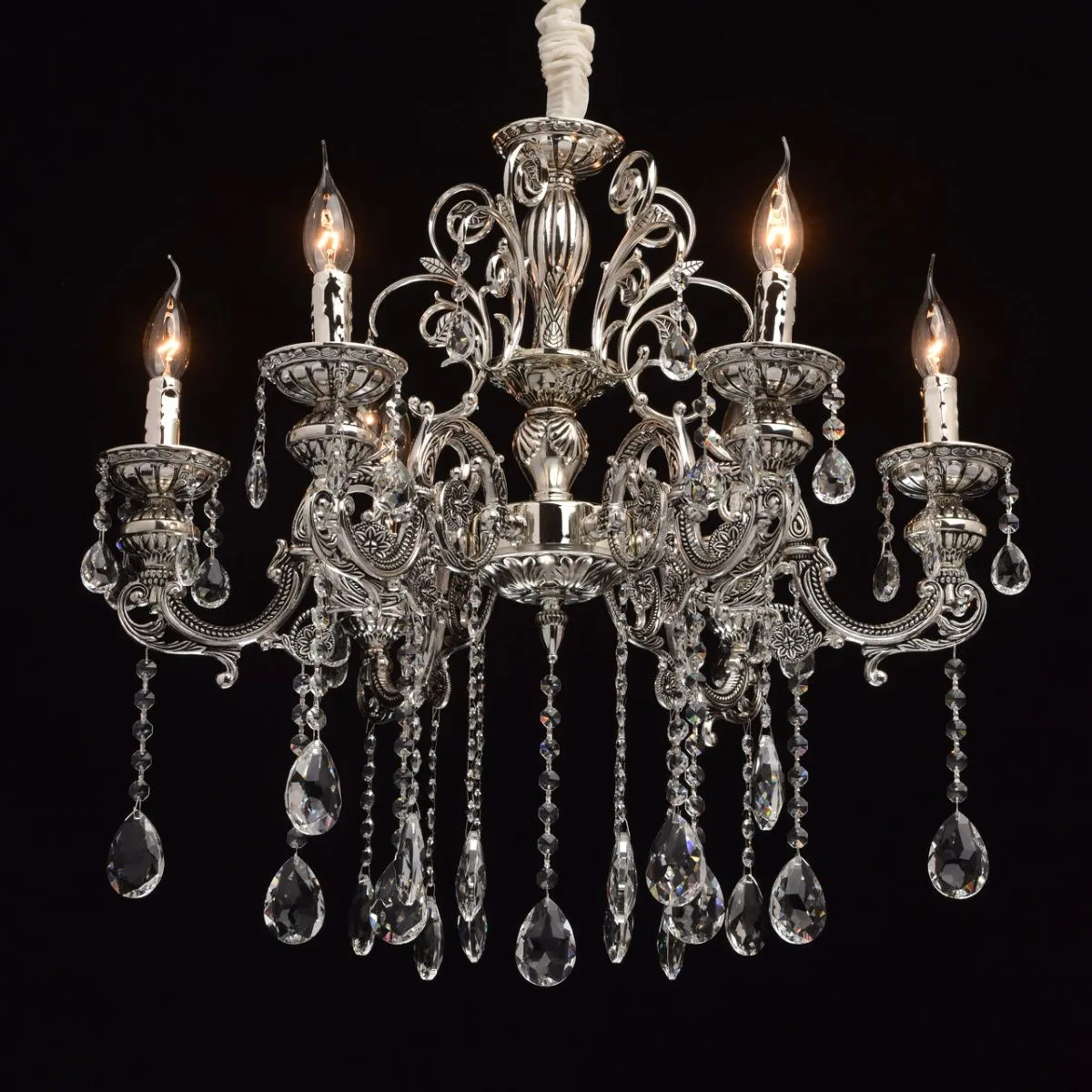 Металлическое основание серебряного цвета с патиной. Декор - хрусталь